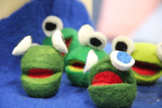 In unseren Schränken befinden sich die Materialien für Förder- und Kreativangebote. Die großen Tische werden vielfältig verwendet.